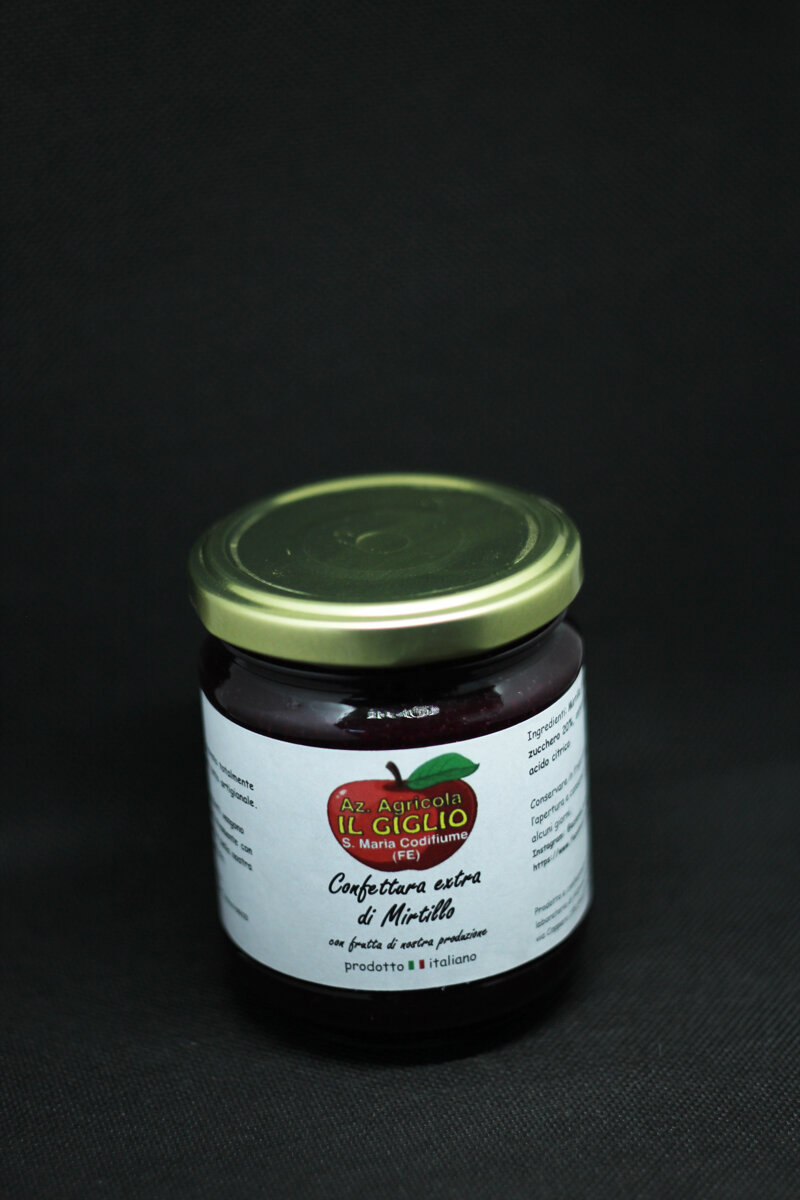 Confettura 100% mirtillo prodotto con i nostri frutti.