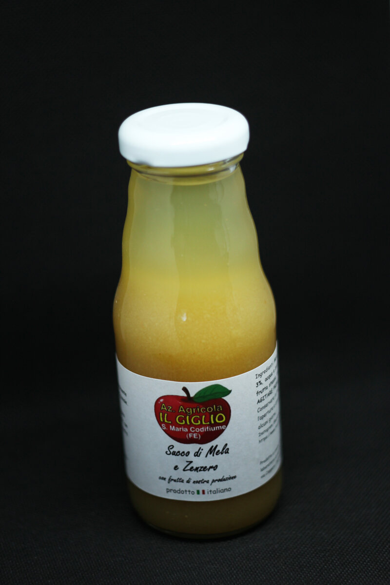 Succo 97% mela e 3% zenzero prodotto con i nostri frutti.